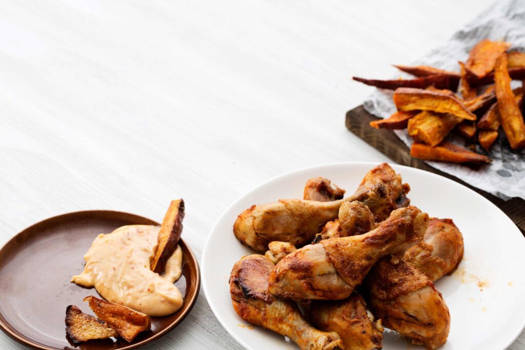Chicken drumsticks are delicious as a keto snack or main course. Goes great with a spicy garlic and chili aioli. 10 minutes preparation | 40 minutes cooking