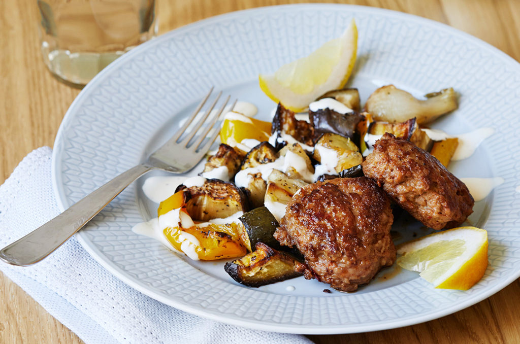 Juicy turkey patties with a touch of spice, creamy sesame paste dressing and oven-roasted vegetables. A proper low-carb carnival of flavours that will give your midweek