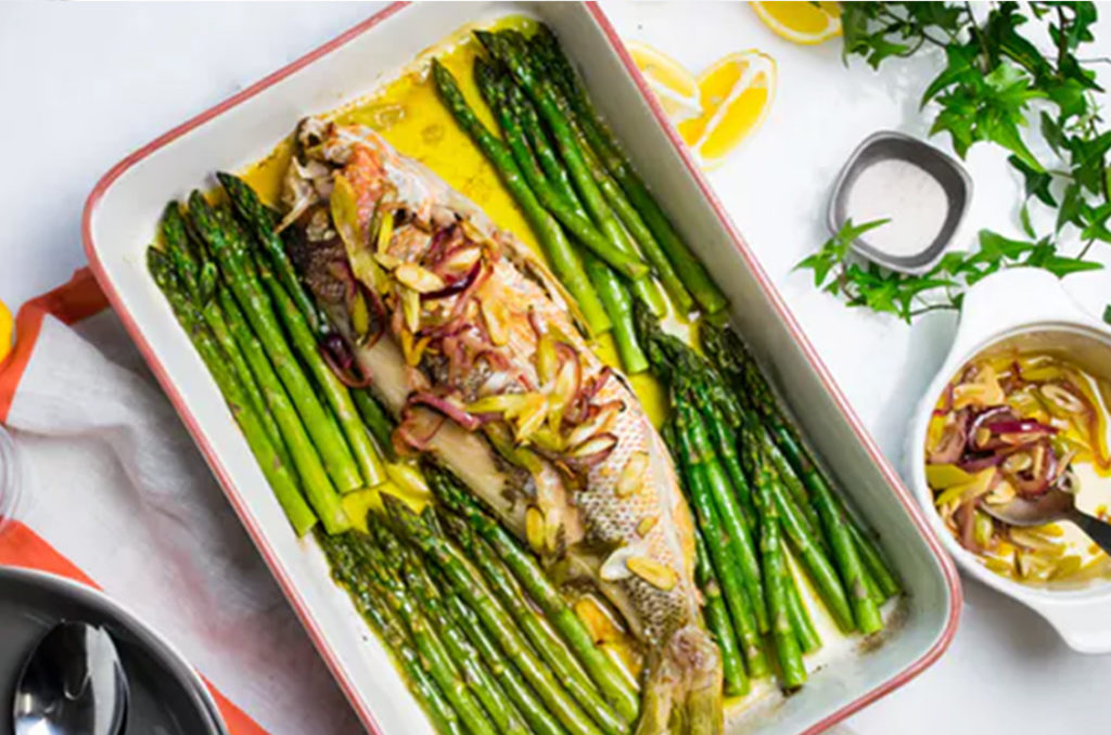 Baked Snapper with Asparagus