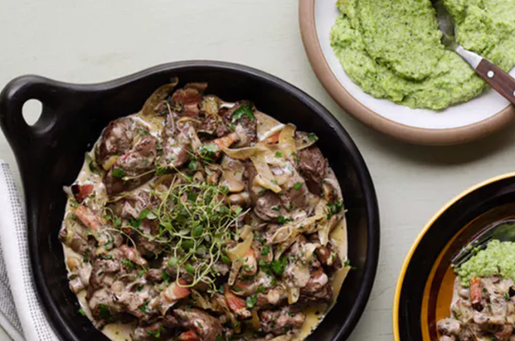 Chicken liver in mushroom sauce & broccoli mash